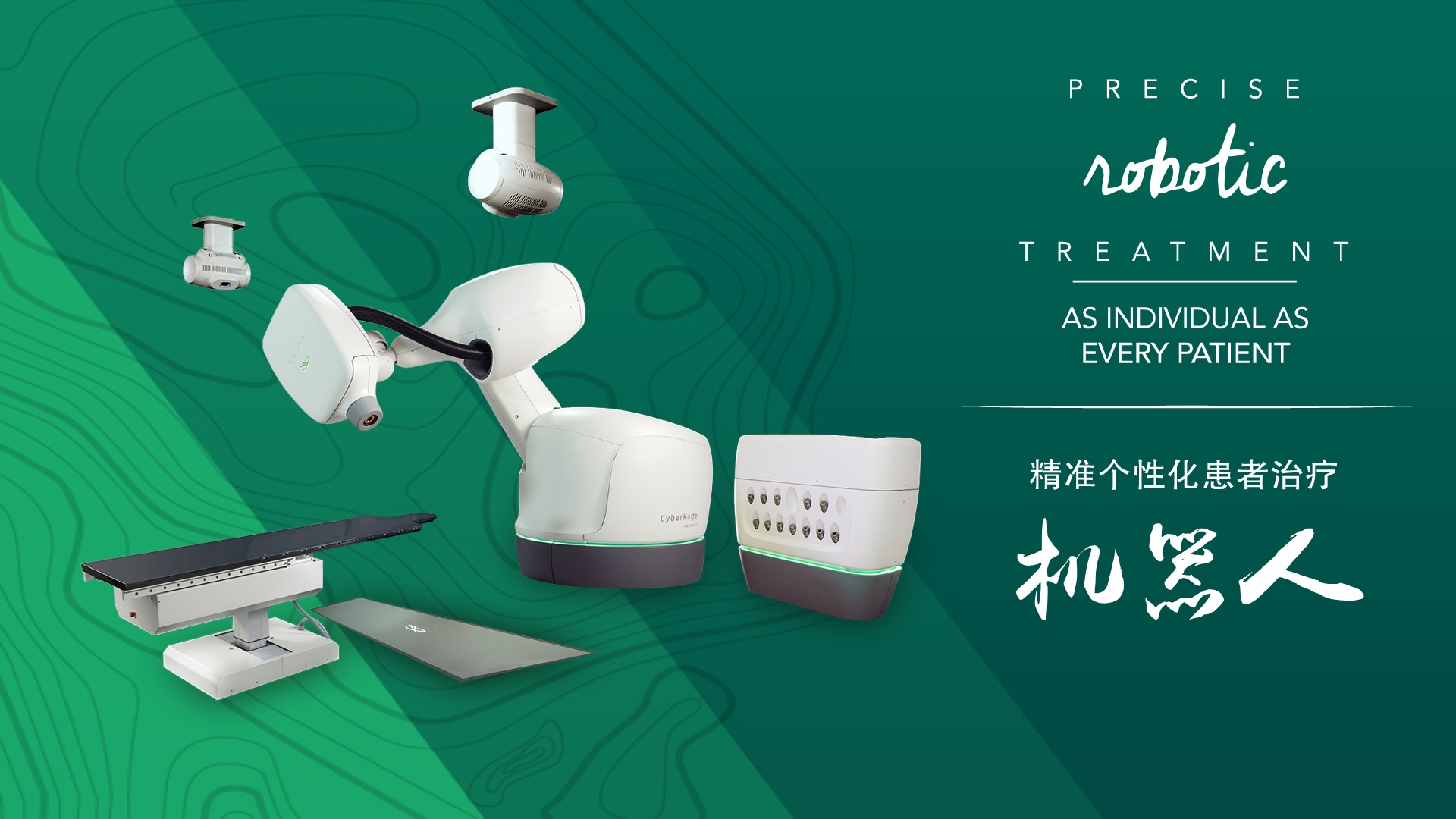 放射外科手术机器人CyberKnife,又称射波刀,是由美国斯坦福大学教授John R. Adler研制而成,是目前最新型的全身立体定向X射线放射外科治疗设备,是全球唯一整合最先进的机器人技术和智能影像实时监控、追踪系统,根据不同患者的个体特征,量身定制不同的治疗计划,在治疗过程中,雕画出肿瘤的范围,利用机器人手臂的全向投照能力,对肿瘤进行立体雕刻式动态追踪治疗,最大范围避免对周围危及器官和正常器官的照射损伤,达到精准治疗的目的。