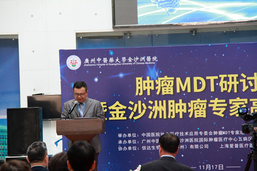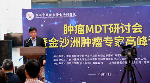 2019年11月17日,由中国医院协会医疗技术应用专委会肿瘤MDT专家组主办,我院国际肿瘤医疗中心五病区承办的《全国肿瘤MDT研讨会暨金沙洲肿瘤专家高峰论坛》在一楼大厅隆重召开,会议邀请了中国医院协会医疗技术应用专委会(MTA)肿瘤MDT专家组的二十多位知名教授及省内外的100多位肿瘤专家出席。