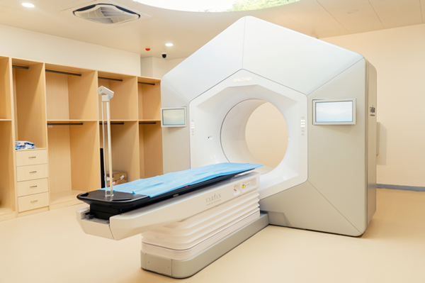 走进国际肿瘤医疗中心,一台台充满现代感的大型诊疗仪器展现在眼前。国际肿瘤医疗中心以“国际化、规范化”为目标,以“智慧精准放疗”为中心,引进了一批大型肿瘤放射治疗设备如国内首台安科锐M6全数字化放射外科射波刀、瓦里安TrueBeam与Halcyon直线加速器、西门子双能光子四维大孔径CT模拟定位机、PET-CT等,使该中心在放疗设备配备上已经达到国内领先水平,与国际接轨。