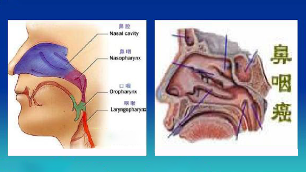 鼻咽癌,是指生长在我们鼻咽部的的恶性肿瘤。我们的鼻腔跟口腔实际上是相通的,从鼻孔一直往后走到头,就到了鼻咽部,从这向下拐90度,下面就是我们的口咽部了。